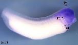 fbrsl1 (fibrosin-like 1) gene expression in Xenopus laevis embryo, NF stage 31, lateral view, anterior left, dorsal up. |