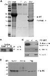 Figure 1- NudC binds to rab11a and rhodopsin in bovine retinas and is present in mouse and frog retinas. A ) IP using an antiârab11a pAb antibody as bait followed by SDSâPAGE revealed 2 proteins binding to rab11a, which were identified by mass spectroscopy as nudC and rhodopsin. B ) Western blot probed for rab11a following IP of bovine retinal lysates using rab11a antibody as bait. C ) Western blots from reverse pulldown experiments using bovine retinal extract and a nudC antibody as bait support an interaction between nudC, rab11a, and rhodopsin. D ) Western blotting confirms nudC is found in retinal extracts prepared from bovines, mice, and frogs. Ab, rab11a polyclonal antibody eluate; C, control IgG; IB, immunoblotting; MW, molecular weight.