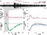 Fig. 4. Decrease of ventricular O2 concentrations during spontaneous spike bursts. a Typical multi-unit recording of the superior oblique nerve (black trace) and corresponding firing rate (red trace; bin width 1âs), depicting a spontaneously occurring spike burst (a1). a2 shows the transiently elevated discharge rate (red trace) of the multi-unit spike activity in a1 (gray area) and concurrent alteration in ventricular O2 concentration (green trace) in an air-saturated bath solution. b Overlay of four consecutive spike burst episodes in an individual preparation (gray traces in the upper plot) and concurrent increases in ventricular O2 consumption (gray traces in the lower plot) along with the respective averages (red and blue traces)