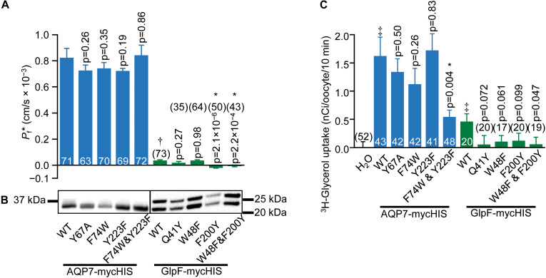 Aquaporin-7: A Dynamic Aquaglyceroporin With Greater Water and Glycerol Permeability Than Its Bacterial Homolog GlpF.