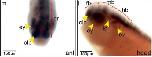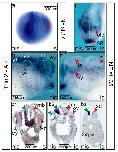 Figure S2. Whole-mount double in situ hybridization of trim2 and tubb2b at NF stage 35/36. (a) Lateral view. (bâd) Transverse section of midbrain, hindbrain, and the spinal cord region. trim2 is mainly expressed in differentiated neurons (e.g., motor neurons, dark blue) such as tubb2b (red). |