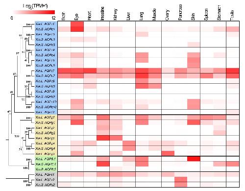 Heatmap of the AQP family expression pattern in different tissues or organs of adult X. laevis. |