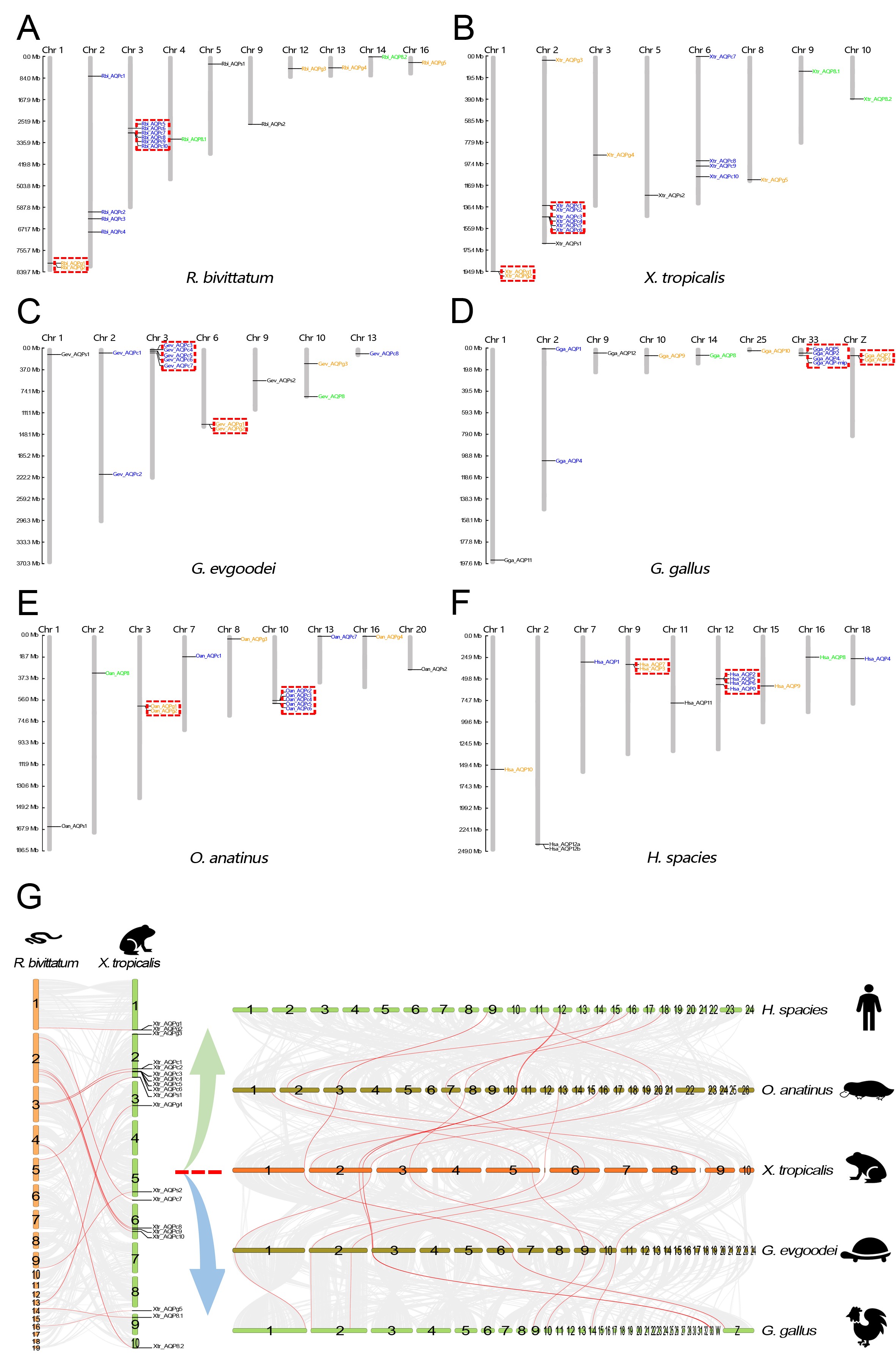 Distribution and correlation of the AQP family in different vertebrates. |