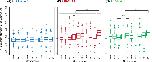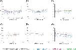 Fig 2. Relationship patterns between proportion of synonymous substitutions (k) and chromosome location.Representative figures displaying different relationship patterns for each genome pair combination (XTR-XLA.L in red, XTR-XLA.S in green, and XLA.L-XLA.S in blue). (A) Chromosome 1 (e.g. XTR1) showed a common non-linear relationship between k and location. This higher k in distal parts of the chromosome was also seen in chromosomes 2 to 7, irrespective of the genome used for location in the x-axis (S1 Fig). (B, C) Chromosome 8 showed contrasting patterns based on the genome used for location reference: (B) XTR8 (S1 Fig) and XLA8L showed higher k in the distal part of chromosome, while (C) XLA8S had no marked relationship between k and location, likely due to intra-chromosomal rearrangements [6]. (D) In XTR9, k increased distally with location, while (E) it decreased in XTR10; (F) in the homoeologous XLA9_10, k decreased with location. Centromere positions are indicated by dotted vertical line and estimated based on position of frog centromeric repeat 1 (Fcr1) [21] or centromeric markers from X. tropicalis [22]. Full results are shown in S1 Fig.