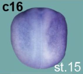 tmem79 (transmembrane protein 79 ) gene expression in X. laevis embryo at NF stage 15, assayed via in situ hybridization, view. |