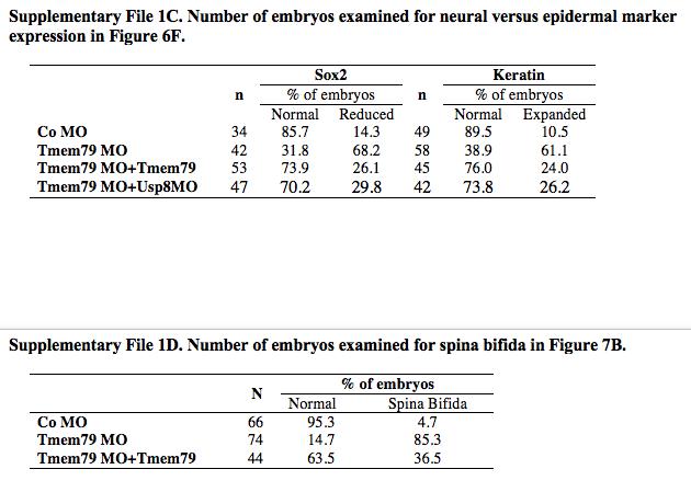 Supplementary file 1. Table 1C. Number of embryos examined for neural versus epidermal marker expression in Figure 6F. Table 1D. Number of embryos examined for neural versus epidermal marker expression in Figure 6F. |