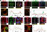 Figure 4. TMEM79 is likely an ER-resident protein.(A to D) Immunofluorescence microscopy of endogenous TMEM79 (red) with ER, PM, lysosome, and Golgi markers (green), respectively, with the nucleus labeled by DAPI (blue). The z-axis is shown on right and underneath. The white scale bar represents 10 µm. Fluorescence intensity of TMEM79 and the respective marker is measured between the two arrowheads in the lower left panel and plotted at lower right. (A) TMEM79 is localized at the ER. TMEM79 and calreticulin (an ER marker) overlap extensively in images and intensity traces. (B) TMEM79 is not present at the PM, which is visualized by β-catenin-EGFP (produced from the endogenous β-catenin gene with an in-frame knock-in of the EGFP gene, see Materials and methods). Note that β-catenin is predominantly localized at the PM in epithelial cells. (C) Some TMEM79 is observed at the lysosome. TMEM79 and LAMP1 (lysosomal-associated membrane protein 1) overlap occasionally. (D) TMEM79 is hardly observed at the Trans Golgi and exhibits little or minor overlap with TGN46 (trans-Golgi marker 46).Figure 4âfigure supplement 1. TMEM79 is an ER-resident protein.(A) TMEM79 is not detectable by the TMEM79 antibody without cell permeabilization. Note that the antibody (Key Resources Table) recognizes the TMEM79 C-terminus (Figure 1D), which is either in the ER lumen, or extracellular if TMEM79 were to be on the PM. This result is consistent with TMEM79 being an ER- but not PM-resident protein. (B) T79KO cells lack TMEM79 staining completely, demonstrating specificity of the TMEM79 antibody for immunostaining. Scale bar = 10 μm. |