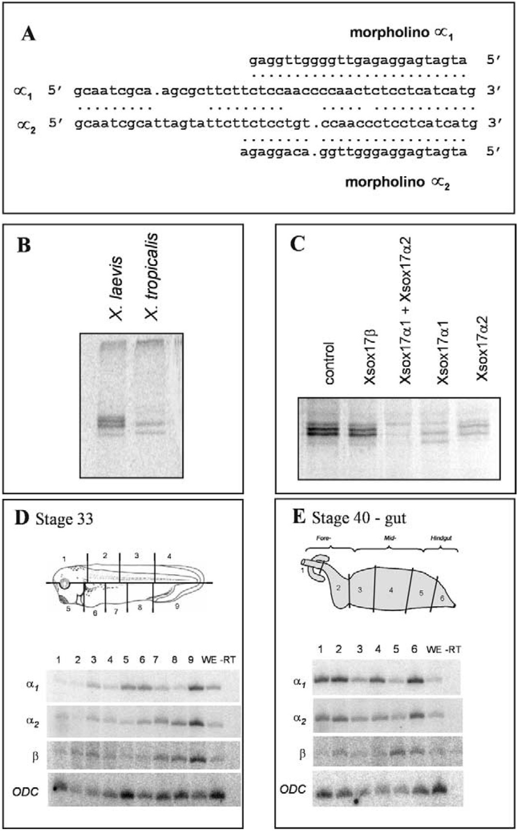 the three Xsox17 genes in (D) stage 33 dissected Xenopus laevis embryos,