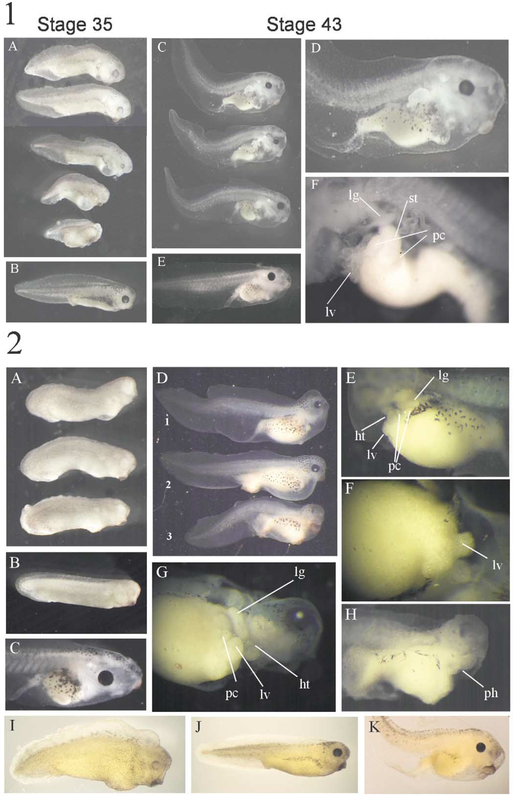 embryo looks like embryo #1 in panel (D). Abbreviations: ht, heart, lg, lung; lv, liver; pc, pancreas; st, stomach; and ph, pharynx.