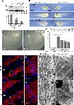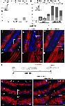 Figure 1. Loss-of-function of Cav1L affects sarcomeric organization and causes swimming defects. (A) Cav1L MO and Cav1L Spl-MO inhibit Xenopus Cav1L expression. Xenopus embryos were injected with 20 ng Morpholinos at the one-cell stage and Cav1α and GAPDH expression was analyzed by Western blotting at stage 27. The graph shows the relative Cav1α expression of four independent experiments, in relation to GAPDH expression and normalized to Co MO-injected embryos, data are meanâ±âs.e.m. ***p-valueââ¤â0.001 (Studentâs t-test). (B) Xenopus embryos were injected with 20 ng Morpholinos and mGFP RNA in one blastomere at the two-cell stage and analyzed at stage 42. Cav1L morphants show mild morphological abnormalities including a shortening of the anteriorâposterior axis, craniofacial malformations and edema formation (arrowhead). (C,D) Tracks of the swimming movement (time frame 4 s) of controls (C) and morphant embryos (D). (E) Percentage of swimming defects of embryos injected unilaterally with Morpholinos (5â7.5 ng) alone or in combination with res-cav1L RNA (+â=â100 pg;â+ââ+ââ=â200 pg,â+ââ+ââ+ââ=â300 pg), a Cav1L-construct lacking the Morpholino binding side, at the two-cell stage. Number of analyzed embryos is indicated for each column. Data from at least three experiments are presented as the meanâ±âs.e.m. * p-valueââ¤â0.05; **p-valueââ¤â0.01; ***p-valueââ¤â0.001 (Studentâs t-test). (F,G) Muscle morphology of stage 38 embryos, injected unilaterally with 20 ng MO at the two-cell stage; asterisks mark injected side. Phalloidin staining reveals sarcomeric actin; DAPI staining marks the nuclei. (Fâ,Gâ) Higher magnification of the boxed areas in (F,G). Controls show normal sarcomeric actin organization, while morphants display wavy and disorganized actin fibers. (H,I) Single somitic segment of a control embryo (H) or a Cav1L morphant (I), injected with 10 ng MO in both blastomeres at the two-cell stage, showing disrupted actin organization within muscle cells. (Hâ,Iâ) Transmission electron microscopy (TEM) picture of control muscle cells with normal sarcomeric organization (Hâ) and Cav1L-morphant muscle cells, which do not show the characteristic sarcomeric structure. Arrowhead marks detached actin bundles; L lipid droplet, Nc notochord. |
