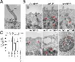 Fig. 3. Knockdown of Inner-Ring NUPs Disrupts Cilia. (A) Examples of cilia components. (B) Representative images of cilia within MCCs of control and inner-ring NUP knockdown morphant embryoepidermis. Black arrowheads indicate properly positioned ciliary components, red arrowheads indicate mispositioned ciliary components beneath the cell surface. Note the apparent inclusion body with multiple ciliary components in the cases of nup188 + nup205 knockdown. (C) Percentages of visualized cells with abnormally positioned basal bodies at cell surface for each condition (basal bodies within 100â¯nm of surface were considered to be normally localized). Ns indicate number of cells assessed from a single embryo per condition. (For interpretation of the references to color in this figure legend, the reader is referred to the Web version of this article.)