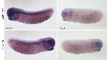 foxj1 (forkhead box J1) gene expression in X.tropicalis embryo, assayed via in situ hybridization, NF stage 28, lateral view, anteriorleft, dorsal up.