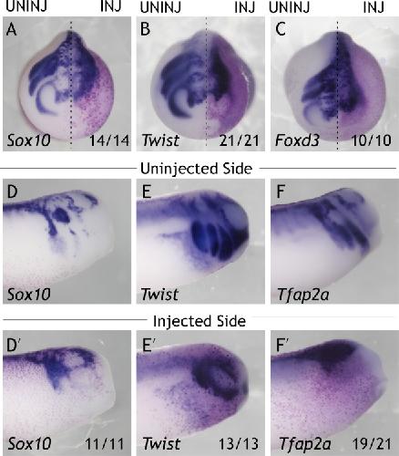 Genes referenced: eya1 foxd3 gdf3 rab40b sox10 twist1 wnt8a znf703