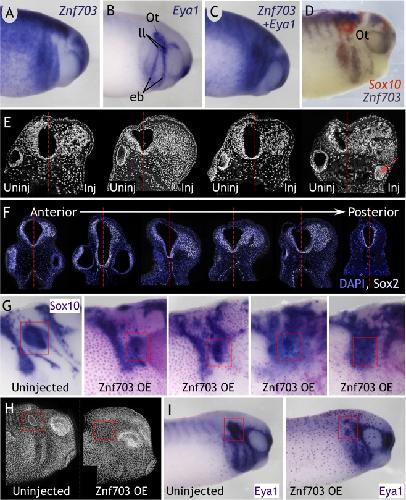 Hong, Znf703, a novel target of Pax3 and Zic1, regulates hindbrain and neural crest development in Xenopus. 2017, Pubmed , Xenbase