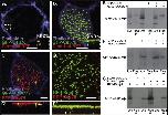 Fig. 1. Cep70 is a deuterosome associated protein. A-B, Z-projections of a non-MCC (A) and an MCC (B) labeled with the centriole marker Centrin4-RFP (red) and GFP-Cep70 (green), inlays are side projections. Scale bar is 5μm. C-D, Mature MCCs in embryos injected with RFP-Cep70 and GFP-CCDC78 (C) and GFP-Deup1 (D). Câ-Dâ, side projections of C-D with arrows identifying colocalization below the apical surface. Scale bar is 5μm. E, Co-IP using FLAG beads to pull down FLAG-CCDC78 followed by an anti-GFP Western blot to identify GFP-Cep70. F, Co-IP using FLAG beads to pull down FLAG-Cep70 followed by anti-GFP Western blot to identify GFP-CCDC78. G, Co-IP using FLAG beads to pull down either FLAG-CCDC78 (lanes 1â3) or FLAG-Cep70 (lanes 4â6) followed by anti-GFP Western blot to identify GFP-Deup1. |