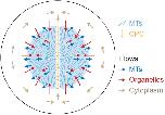 Figure 9. Model for component flows during aster separation movement in frog eggs.Within moving asters, all cytoplasmic networks move together, advecting cytosol. Near the aster periphery, organelles flow rapidly inwards while MTs flow outwards. Outside the aster, cytosol is displaced around asters and into the midplane by hydrodynamic forces. |