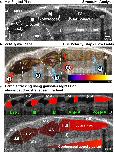Fig. 3. Late pre-metamorphosis tadpole displays complex compartmental CSF circulation and bidirectional intercompartmental mixing. a Mid-sagittal plane in vivo OCT imaging of stage 30 tadpole before and after microbead injection. Temporal color-coded image shows suspended, static bead (Additional file 3: Movie S2). b Mid-sagittal plane in vivo OCT imaging of stage 49 tadpole before and after microbead injection. The temporal color-coded image shows multiplanar CSF circulation (Additional file 4: Movie S3). c Focused image shows the aqueduct between the lateralventricle and 3rd ventricle. The trajectory of the CSF circulation is shown by the red and yellow arrows (Additional file 5: Movie S4). d Focused image shows the aqueducts between the 3rd, midbrain (MV) and 4th ventricles (IV). The trajectory of the CSF circulation is shown by the red and yellow arrows (Additional file 6: Movie S5). (E) Focused 4th ventricle OCT image shows the choroid plexus projections (white arrows). Post-NiCl intraventricular injection, OCT image allows visualization of the static ependymal cilia (white arrowâAdditional file 6: Movie S6). Along the yellow line, the kymograph showing motile ciliaâs beating along the choroid plexus surface, which stops post NiCl injection