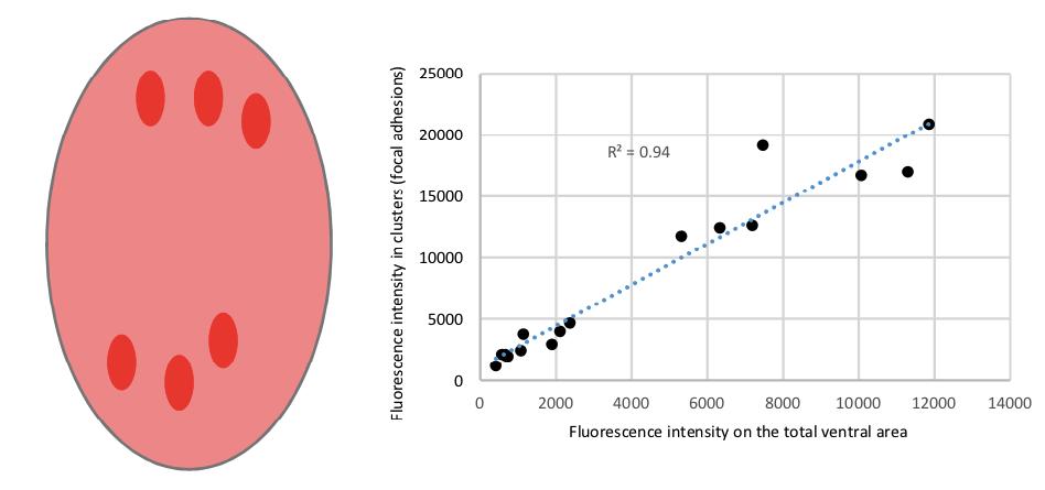 S1 Fig. (B) Quantification of accumulation of Vinculin-Cherry in FAs: linearity between fluorescence levels in FA and total intensity (related to Fig 1Aâ1D). Because Vinculin-Cherry expression levels vary from cell to cell, quantification was performed for individual cells by measuring fluorescence in bright clusters (corresponding to FAs) and in the total ventral cell surface (pink on the diagram). The plot shows the average intensity of the ventral surface versus the average intensity in FAs for control mesoderm cells in 1 experiment, each dot corresponding to a single cell. It shows that accumulation at FAs is proportional to total expression levels over a wide range. Refer to S1 Data. Linearity was similarly verified for each experiment. FA, focal adhesion; FN, fibronectin; mYFP, membrane-targeted yellow fluorescent protein. https://doi.org/10.1371/journal.pbio.3001060.s003 |