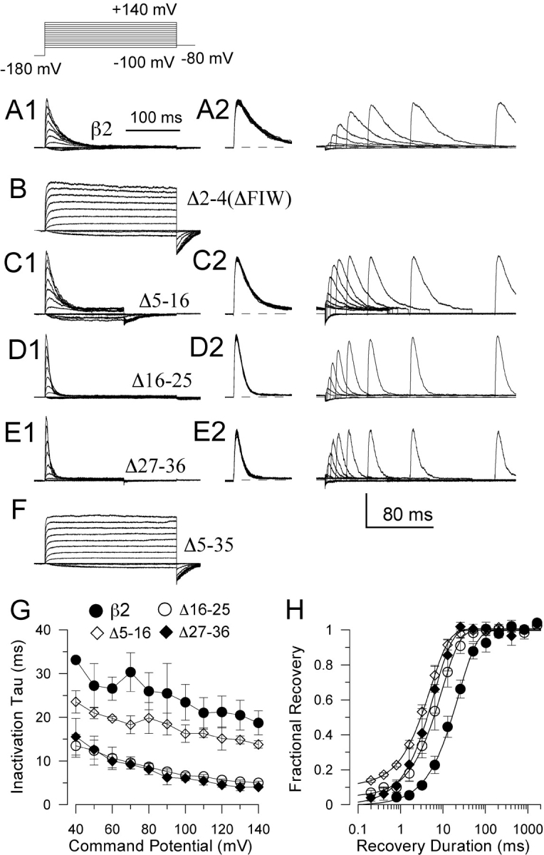 Inactivation of BK channels by the NH2 terminus of the beta2 auxiliary subunit: an essential role of a terminal peptide segment of three hydrophobic residues.