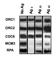 Figure S3. Replicating extracts were incubated with PAA and Ag ions in the presence of PAA for 90 minutes, and DNA replication was assessed by incorporation of α-[32P]dCTP into genomic DNA. |