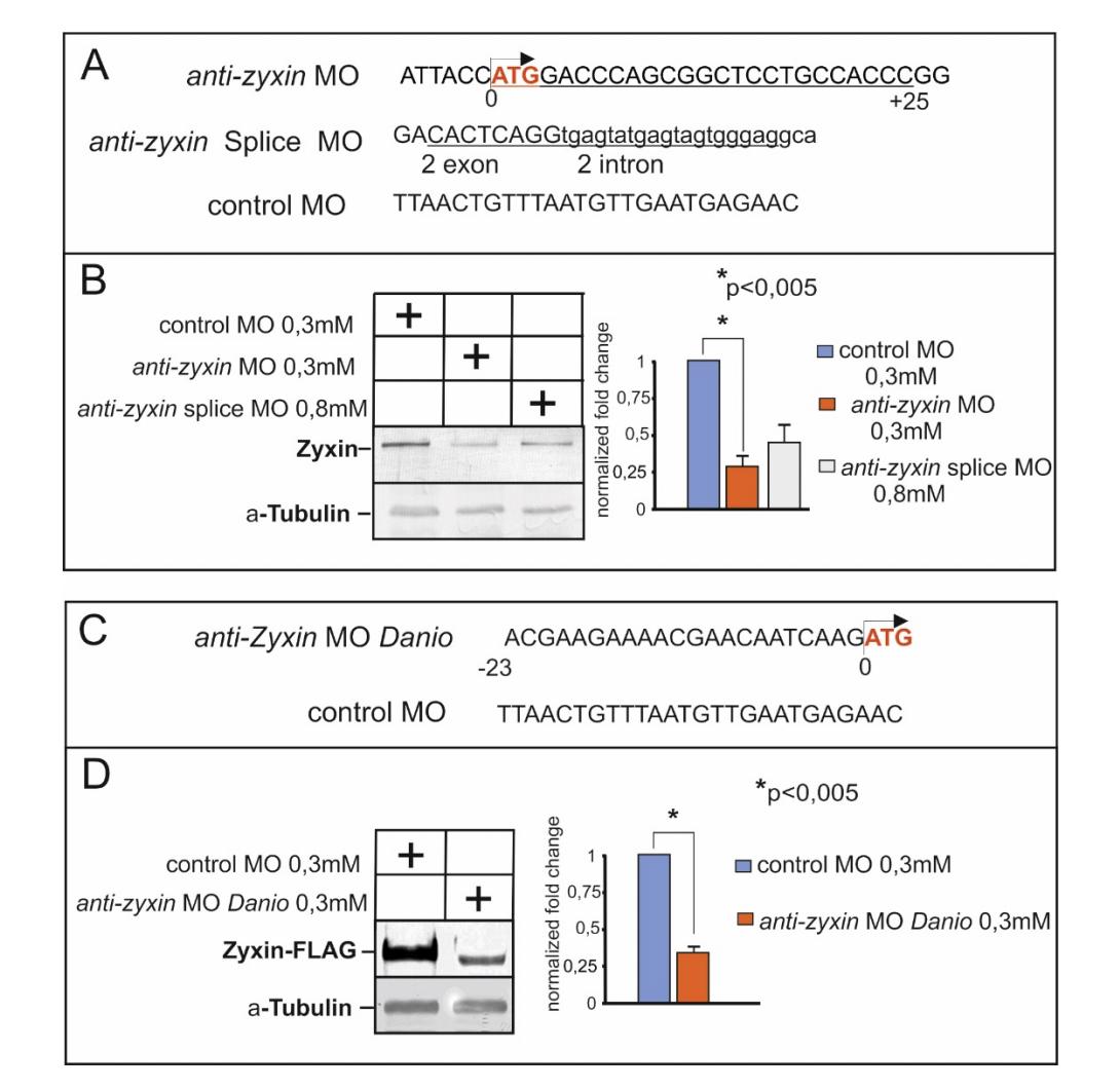 D. For testing specificity of these MOs, mRNA encoding Danio zyxin tagged at the C-terminus with