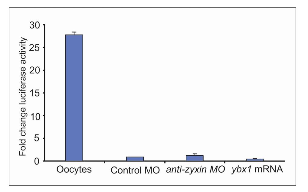 Zyxin knockdown and overexpression of Ybx1 do not affect activity of the promoter fragment (base