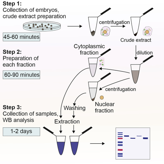 This protocol for the separation of nuclear and cytoplasmic fractions of cells of Xenopus laevis embryos was developed to study changes in the intracellular localization of the Zyxin and Ybx1 proteins, which are capable of changing localization in response to certain stimuli. Western blot analysis allows the quantification of changes in the distribution of these proteins between the cytoplasm and nucleus, whereas the posttranslational modifications specific to each compartment can be identified by changes in electrophoretic mobility. For complete details on the use and execution of this protocol, please refer to Parshina et al. (2020).