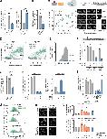 Figure S5. Analysis of the G2/M checkpoint and under-replicated DNA after LRR1 loss(related to Fig. 4). (A) Continuously cycling cells stably expressing Cas9 were transfected with sgRNAs and fixed 1 d later. Left: Percentage of G2/M cells with positive phospho-H3-Ser10 signal. Paired Student’s t test; P = 3.3 × 10−3 (n = 4 independent experiments, n ≥ 3,421 cells per condition). Right: Abundance of chromatin-bound CDC45 in G2/M-phase cells normalized to control cells. Paired Student’s t test; P = 1.3 × 10−3 (n = 4 independent experiments, n ≥ 3,421 cells per condition). (B) Cells were treated with DMSO or a p97 inhibitor (CB-5083, 4 µM) for 6 h. Percentage of G2/M cells with positive phospho-H3-Ser10 signal. Paired Student’s t test; P = 0.044 (n = 2 independent experiments, n ≥ 3,522 cells per condition). (C) Top: Schematic of cyclin E/A–CDK activity reporter. DHB is a fragment (aa 994–1087) of the human DHB protein. The reporter translocates to the cytoplasm when phosphorylated by cyclin E/A–CDK activity. Bottom: Cells expressing H2B-mTurquoise and the cyclin E/A–CDK activity reporter were released from serum starvation and imaged and further categorized as CDK-high if cyclin E/A–CDK activity rose above 0.85 for more than 1 h. Mitosis was monitored by the separation of condensed chromatin during anaphase (see bottom right sample images). Cells #1 and #2 underwent mitosis at 22.5 h and 25 h after release, respectively. Cells #3 and #4 did not undergo mitosis within 30 h after release. Scale bar: 10 µm. (D) Serum-starved cells stably expressing Cas9 were transfected with sgRNAs and released from starvation 2 d later. Cyclin E/A–CDK activity and mitotic time were measured (n = 50 sample traces displayed). Data are representative of three independent experiments. (E) Quantification of D. Percentage of CDKhigh cells that underwent mitosis is plotted as a function of time since serum release (n = 6,016 and 5,979 cells). Fisher’s exact test; ***, P < 1 × 10−3. Data are representative of three independent experiments. (F) Cells expressing CRISPR-resistant LRR1 from a doxycycline-inducible promoter were transfected with sgCNTL or sgLRR1 and selected for stable single-cell clones. Cells were cultured in doxycycline to maintain expression of exogenous LRR1. Percentage of G2/M cells with positive phospho-H3-Ser10 signal was measured after replacing doxycycline with DMSO or doxycycline for 1 d. Two-sample Student’s t test; P = 0.38, 0.016, 3.7 × 10−3 (n = 2 technical replicates, n ≥ 2,104 cells per replicate). (G) Effect of LRR1 knockout was measured in p53−/− cells. Percentage of G2/M cells with positive phospho-H3-Ser10 signal. Two-sample Student’s t test; P = 0.014 (n = 2 technical replicates, n ≥ 4,111 cells per replicate). (H) Serum-starved cells stably expressing Cas9 were transfected with sgRNAs, released from starvation 2 d later, and fixed after 30 h. Left: Percentage of G2/M cells with positive phospho-H3-Ser10 signal. Two-sample Student’s t test; P = 1.1 × 10−3, 0.11 (n = 2 technical replicates, n ≥ 5,807 cells per replicate). Right: Nuclear abundance of p21 in G2/M cells normalized to control cells (sgCNTL + siCNTL). Two-sample Student’s t test; P = 8.7 × 10−4, 1.0 × 10−4 (n = 2 technical replicates, n ≥ 5,807 cells per replicate). (I) Percentage of G2/M cells with positive phospho-H3-Ser10 signal after 4-h treatment with ATM inhibitor (ATMi; KU-60019, 5 µM), DNA-PK inhibitor (DNA-PKi; NU7441, 1 µM), or ATR inhibitor (ATRi; AZ20, 1 µM; n ≥ 4,648 cells per condition). Data from two independent experiments. (J) Histogram of chromatin-bound CDC45 in G1-phase daughter cells or G2/M cells after 4-h treatment with DMSO or Wee1 inhibitor (Wee1i; MK1775, 1 µM; n ≥ 356 cells per condition). Data are representative of two technical replicates. (K) Sample immunofluorescence images from experiment in Fig. 4 I. Scale bar: 20 µm. Data are representative of three independent experiments. (L) LRR1 was depleted in LRR1−/− cells expressing exogenous, doxycycline-inducible LRR1 by removing doxycycline and transfecting siRNA targeting exogenous LRR1 1 d before fixation. As a positive control, cells were treated with the indicated concentration of aphidicolin for 16 h. Top: Cells were treated with Wee1 inhibitor (MK1775, 1 µM) for 1 h and pulse labeled with EdU for 10 min. EdU puncta area was quantified in mitotic cells with positive phospho-H3-Ser10 signal. Two-sample Student’s t test; P = 7.2 × 10−4, 0.047, 0.038, 0.025, 1.5 × 10−3 (n = 2 technical replicates, n ≥ 209 cells per condition). Bottom: Cells were treated with Wee1 inhibitor (MK1775, 1 µM) for 3 h, and chromatin-bound 53BP1 puncta area was quantified in G1-phase daughter cells born after Wee1 inhibition. Two-sample Student’s t test; P = 0.0498, 0.030, 0.32, 0.77, 0.090 (n = 2 technical replicates, n ≥ 582 cells per condition). R.F.U., relative fluorescence unit; TRE, tetracycline-responsive element. In all panels, *, P < 0.05; **, P < 0.01; ***, P < 0.001. |