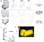 Figure S15: Secreted factors from regeneration-competent explants are not sufficient to induce Fgf8+ epidermal cells on the amputation plane of regeneration-incompetent explants, and reducing the proportion of chondrogenic lineage populations in explants can induce ectopic Fgf8+ epidermal cells. (a) Co-culturing regeneration-competent with -incompetent explants does not enable AER cell formation ability in -incompetent explants. RC: regeneration-competent; RI: regeneration- incompetent. Co-culture of regeneration-competent-competent and assess âcompetent: total n=8, from 2 biological replicates, Co-culture regeneration-competent-incompetent and assess âcompetent: n= 5 from 2 biological replicates. Co-culture regeneration-competent-incompetent for -incompetent total n= 6 from 2 biological replicates. P*< 0.05, and P**< 0.001. (b) Treatment with âcompetent conditioned media does not enable AER cell formation in incompetent explants. Adding -competent-media to âcompetent explants: total n=6, from 2 biological replicates. Adding -competent-media to ârestricted explants: n= 10, from 3 biological replicates. Adding -competent-media to âincompetent explants: n= 5, from 1 biological replicate. P**< 0.001. (c) Regeneration-competent explants were treated with recombinant BMP4, recombinant NOGGIN, or anti-NOGGIN antibodies. Contralateral limbs were used as controls and treated with vehicle solutions (0.1% BSA, or anti-IGG). Recombinant BMP4 or NOGGIN additions block AER cell formation. Anti-NOGGIN antibody treatment enhances AER cell formation. From left to right 0.1% BSA: total n=11 from 3 biological replicates; rBMP4: total n= 12 from 3 biological replicates; 0.1% BSA: total n=7 from 2 biological replicates; rNOGGIN: total n=11 from 2 biological replicates; anti-IGG antibody: total n=14 from 4 biological replicates; anti-NOGGIN antibody: total n=14 from 4 biological replicates. Each sample group compared to their contralateral group to assess statistical significance. P*< 0.05, and P**< 0.001. (d) (Top) Schematic describing the protocol for culturing distal limb buds (NF stage ~52) and early autopods (NF Stage ~54). Tip explants were cultured for 3 days in explant media, and assessed for Fgf8.L expression. (Bottom) Tip cultures show ectopic Fgf8.L expression as assessed by whole-mount stereomicroscope HCR staining for Fgf8.L. Red arrows show Fgf8.L expression regions. Ectopic AER formation is seen in total 16/18 cases from 2 biological replicates. Red, Fgf8.L mRNA. Scale= 100 μm. |