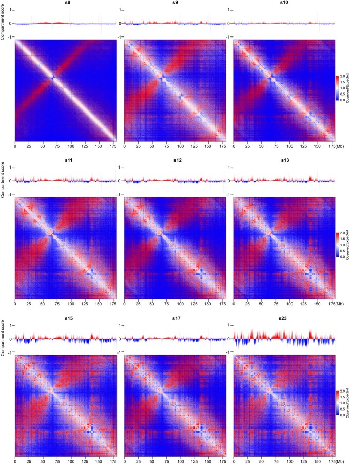 Extended Data Fig. 8. Compartment score for the assignment of compartments A and B.Chromosome 2 is shown as example. |