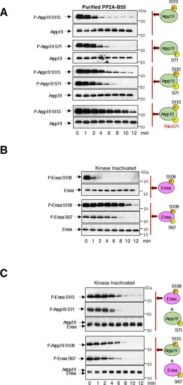 The study of the determinants controlling Arpp19 phosphatase-inhibitory activity reveals an Arpp19/PP2A-B55 feedback loop.