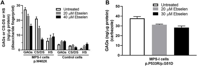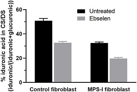 Inhibition of iduronic acid biosynthesis by ebselen reduces glycosaminoglycan accumulation in mucopolysaccharidosis type I fibroblasts.