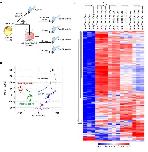 Figure 1. Transcriptomic relationships among AC samples. (A) Overview of the sample preparation for a time-course RNA-seq. ACs were collected without activin A treatment (Pre_activin), and after activin A treatment for 1, 3, 6 and 9 h (Post 1h_activin, Post 3h_activin, Post 6h_activin, and Post 9h_activin). (B) Principal component analysis (PCA) of ACs. The first two principal components PC1 and PC2 represented 53.7% of the total variance. Each dot denotes a single biological replicate, and dashed circles represent three replicates for each individual sample. Black dot, Pre_activin; blue dot, Post 1h_activin; purple dot, Post 3h_activin; green dot, Post 6h_activin; red dot, Post 9h_activin. (C) Hierarchical clustering of the expression profiles between Pre_activin and Post_activin groups. Individual samples are shown in columns, and genes in rows. The upper axis shows the clusters of samples, and the left vertical axis shows clusters of genes. The heatmap represents relative expression (red, high; white, intermediate; blue, low expression). Rep1-3; the biological replicate 1â3. The heatmap was visualized using the CLC Genomic Workbench software 12.0 (QIAGEN). |