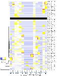 Figure 4. Heatmap and cluster analysis of differential expression of all validated/putative ORFs for coding genes along the FV3 genome. FPKM values were used as for paired-end RNA-Seq per differential gene expression and cluster analysis, clustered using the log10(FPKM + 1) values. Yellow denotes genes with high expression levels, and blue denotes genes with low expression levels. The color range from yellow to blue represents the log10(FPKM + 1) value from large to small. The ORFs sit in the same or close clusters that have similar expression patterns across the samples. The black rows indicate that the expression of the corresponding ORFs has not been detected, implying a silent or nonproductive transcription. The table at the right lists the 98 annotated open reading frames (ORFs) in the FV3 genome and the corresponding designation of gene symbols as defined under the GenBank FV3 reference genome (NC_005946.1). The red line frames indicate higher expressed gene clusters in the infected tissues other than the kidney and spleen, where FV3 primarily showed high expression in general. Other abbreviations: FPKM, fragments per kilobase of transcript per million mapped reads; H.P., hypothetical proteins; T.C., temporal class. |