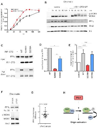 Hiraga, Rif1 controls DNA replication by directing Protein Phosphatase 1 to reverse Cdc7-mediated phosphorylation of the MCM complex. 2014, Pubmed