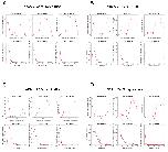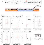 Modeling experimental combing data with MM4 model (Ciardo et al. 2020a) in the case where the potential origins are heterogeneously distributed along the genome. Open circles are experimental data for different replication parameters; the red dashed line is the average of 100 independent fits from MM4 and the red error bars indicate standard deviations. [see suppl. files for equations] |