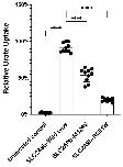Figure 5. Met126Val mutation reduces uric acid uptake. Uric acid uptake assay was performed as described in the Methods section. M126V mutation in SLC2A9b reduced uric acid uptake by 45% and R351W mutation decreased by 70%. Histogram depicts relative urate uptake level (n = 10). Quantification with one-way ANOVA (Dunnett’s multiple comparisons test), **** p < 0.0001. Data represent the mean ± S.D. of three individual experiments. **** p < 0.0001.