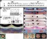 Supplementary Fig. 7. Expression profile of the sp1r5.S receptor gene, in vivo test of MO specificity and phenotypes caused by its knock-down (related to Fig. 6). (A) The s1pr5.S receptor displays a restricted expression profile in the adult frog and is expressed in the mesonephric tissue. Adult tissues were dissected and total RNAs from adult tissues were extracted using Trizol (Invitrogen) following the manufacturerâs protocol. RT- PCR was performed along with negative control. (B) The novel s1pr5.S receptor is expressed in the kidney with an expression profile similar to its homelog, the s1pr5.L receptor. X.laevis embryos were dissected and total RNA extracted. RT-PCR was performed on dissected tissues and control whole embryos along with negative control. S1pr5.S was amplified using the following primers (forward primer, 5â- ggaggtctcgttgctgtctc -3â and the reverse primer, 5â- cggtagctcctcgtgtaacc -3â) with the annealing temperature of 53°C and 32 cycles, Each RT-PCR product was sequenced to confirm the specificity of the amplifications. (C) Alignment of the 5âUTR of X.laevis s1pr5 homeologs sequences and position of s1pr5.L and s1pr5.S MOs. The ATG is indicated in red and identical nucleotides by dots. Only 4 nucleotides over the whole MOs sequences differ between the two genes. (D) Efficacy of the s1pr5.L and s1pr5.L MOs. Schematic representation of the GFP fusion proteins containing the 5âUTR and part of the coding region of s1pr5.L and s1pr5.S. The position of the s1pr5.L and s1pr5.s MO are indicated. Xenopus embryos were injected with the s1pr5.LGFP, s1pr5.S -GFP and GFP mRNAs at one cell stage followed by unilateral injections of s1pr5.L, s1pr5.S and control MOs in presence of LacZ mRNA at 2-cell stage. GFP+ positive embryos were sorted at stage 16 and stained for Ã-galactosidase activity. The numbers of embryos GFP+ fluorescent on one side and LacZ+ on the opposite side and the percentage of efficiency of the different MOs to inhibit in vivo the translation of the different mRNAs are indicated in the table. (E) Microinjection of s1pr5.S MO induces a similar kidney phenotype than the microinjection of the s1pr5.L MO. Injected embryos analysed by 3G8/4A6 antibody staining at stage 41. (a) Embryo injected with 15ng of s1pr5.S MO (b) Embryo injected with 15ng of s1pr5.L MO. (c) Embryo injected with 15ng of control MO. Asterisk denotes uninjected sides. The raw data and statistical analyses are provided in Supplementary Table 5. |