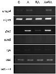 Supplementary Fig. 4. Enpp4 expressionis regulated by activin but not by retinoic acid in animal cap assay (related to Fig. 3). Animal cap were taken at blastula stage and cultured during 3 hours in the presence of activin (A), retinoic acid (RA) or activin + retinoic acid (A+RA) and total RNA extracted. RT-PCR was performed on treated and control (C) animal caps. The amplification of odc on samples with no reverse transcriptase (-RT) was carried out to control the purity of the RNAs. |