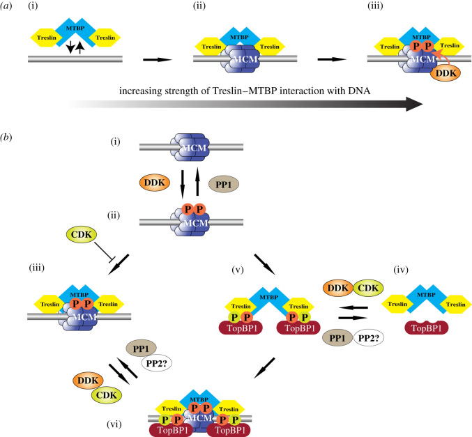 The role of DDK and Treslin-MTBP in coordinating replication licensing and pre-initiation complex formation.