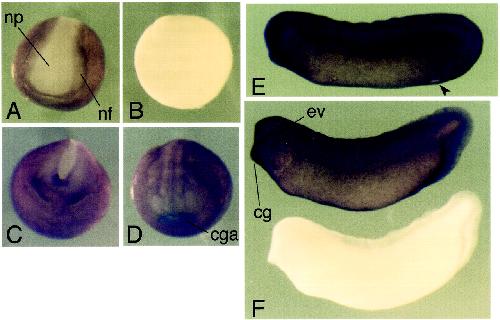 by whole-mount in situ hybridization. A, early neurula stage (stage