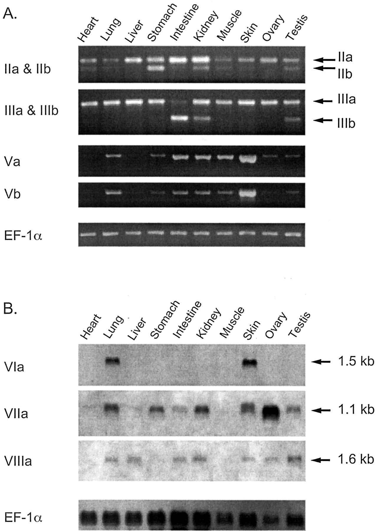 -IIb, -IIIa, -IIIb, -Va, and -Vb was analyzed by RT-PCR. The
