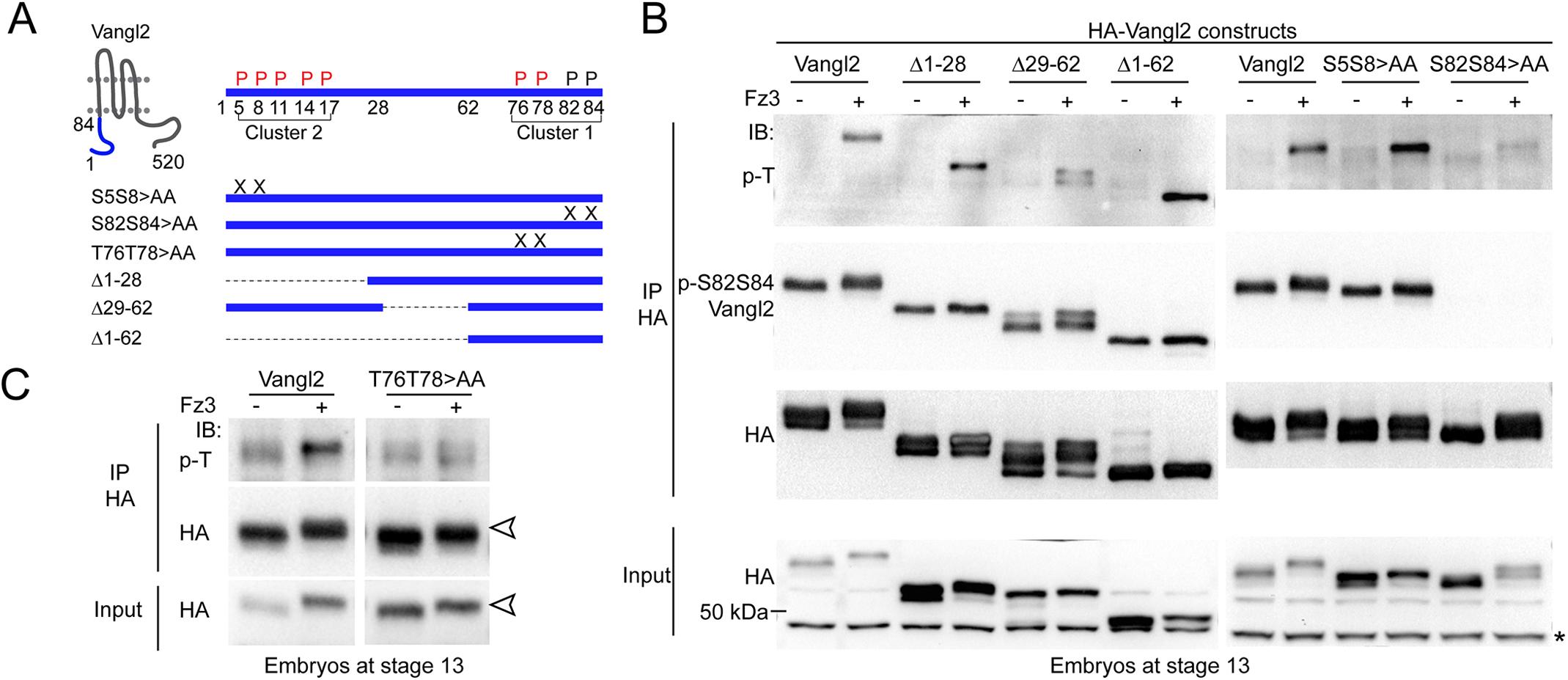 Xla Wt + HA-vangl2{T76>A,T78>A}(Fig.S4.A,B)