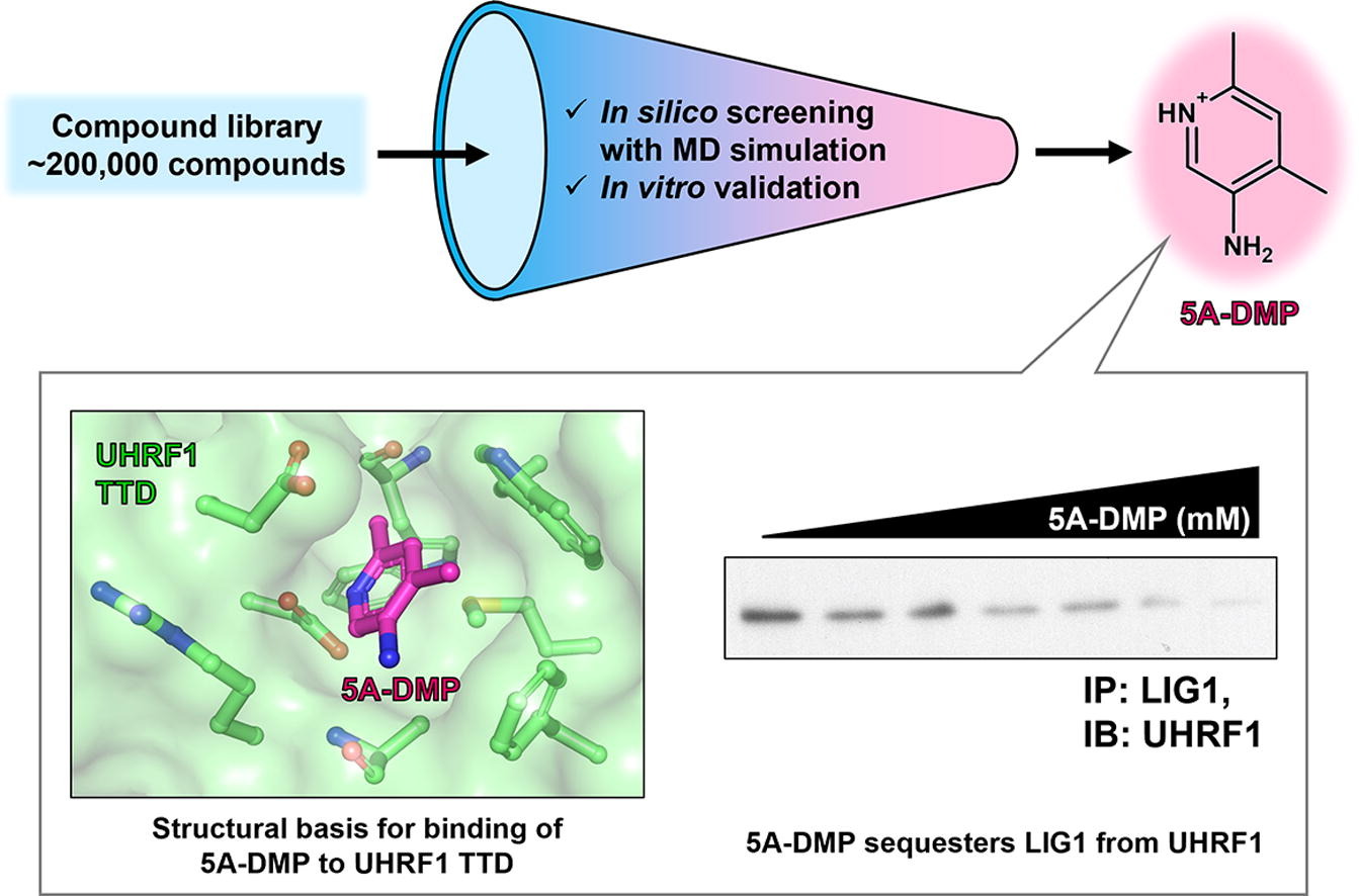 Structure-based screening combined with computational and biochemical analyses identified the inhibitor targeting the binding of DNA Ligase 1 to UHRF1.
