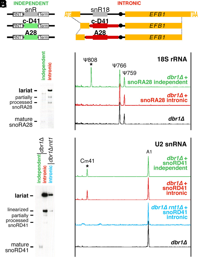 Ooi, Intronic snoRNA biosynthesis in Saccharomyces cerevisiae depends on the lariat-debranching enzyme: intron length effects and activity of a precursor snoRNA. 1998, Pubmed