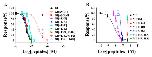 Figure 4. Concentration-dependent response curves of the GI and MI variants interacting with rat muscular nAChRs. (A) GI variants; (B) MI variants. The error bars for the data denote the SEM. Five to seven oocytes were used for each determination. The IC50 values and 95% confidence intervals are summarized in Table 1.