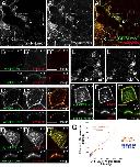 Fig. S5. The subcellular localization and effects of GFP-Lmo7(aa 242-709) on F-actin RNAs were injected into 4-8 cell embryos. At stage 11, the embryos were fixed and the ectoderm was stained with phalloidin (A-Fâ, I-Iâ), or anti-GFP and NMIIA antibodies (G, Gâ). (A-Fâ) The subcellular localization of GFP-Lmo7 (A-Bâ), GFP-Lmo7(aa 242-709), and GFP-Lmo7(aa 242-400) after injection of 200 pg of each RNA. x-y view (A-Aâ, C-Câ, E-Eâ) and x-z view (B-Bâ, D-Dâ, F-F). Note that both Lmo7(aa 242-709)(C-Dâ) and Lmo7(aa 242-400) show more localization at the apical cortex, compared to full-length Lmo7. (G-H) The effects of GFP-Lmo7(aa 242-400)(1 ng RNA) on NMIIA in stage 11 ectoderm. (G-Gâ) Ectodermal cells expressing GFP-Lmo7(aa 242-400)(asterisks). (H) Quantification of GFP-Lmo7(aa 242-400) effects on NMIIA at apical junctions. Fluorescent intensity of NMIIA was measured on individual cell-cell boundaries. (I-J) The effects of GFP-Lmo7(aa 242-709)(1 ng RNA) on F-actin in stage 11 ectoderm. (I, Iâ) Ectodermal cells expressing GFP- Lmo7(aa 242-709)(asterisks). (J) Quantification of F-actin accumulation at apical junctions. Fluorescence intensity of phalloidin was measured at 3-10 locations within individual perijunctional F-actin bundles. Statistical significance of the difference between the median values was assessed by the Mann-Whitney U test. Data are representative of three independent experiments. Scale bar: 10 μm. |