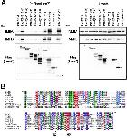 Figure 7. The DUF4757 domain binds to NMII heavy chain. (A) NMIIA and NMIIB co-precipitate with Flag-Lmo7 in HEK293 T cells. Asterisks indicate protein bands corresponding to full-length or deletion mutant forms of Lmo7. Lmo7(aa 242-400) containing DUF4757 is sufficient to co-precipitate endogenous NMIIA and NMIIB. (B) The alignment of DUF4757/NMIIBD sequences. Xenopus laevis Lmo7 (NM_001135230), Mus musculus Lmo7 (XM_006519190), Danio rerio Lmo7 (XM_021478660), Xenopus laevis LIMCH1 (NM_001096206), Mus musculus LIMCH1 (NM_001001980), Danio rerio LIMCH1 (XM_009291008), Ciona intestinalis Lmo7 (XM_002128910) and Drosophila melanogaster Smallish (NM_169014). Conserved positively charged, negatively charged, hydrophobic or hydrophilic amino acids are marked by red, blue, green and purple, respectively. Ser or Thr residues are marked by light blue. Consensus sequence based on amino acid similarity (>70%) is shown at the bottom. The conserved WQ-WK sequence used for AA-AA substitution is indicated. |
