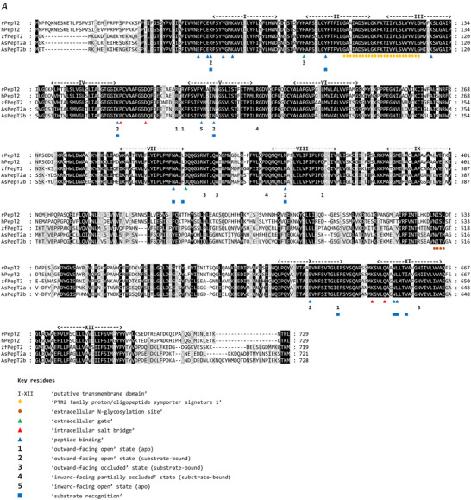 Unified modeling of the mammalian and fish proton-dependent oligopeptide transporter PepT1.