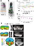 Figure 3—figure supplement 1. Giant sandwich explants were made from rhodamine dextran amine (RDA) labeled embryos (A,B) prior to the onset of gastrulation, allowed to heal under a cover glass for 30 minutes, then allowed to equilibrate for at least 1 hour after cover glass removal, prior to fixation.Explants were then cut parasagittally in the dorsal and ventral regions and the resulting “chops” were imaged with LSCM parallel to the cut surface. The total thickness of the lower and upper IMZ and the NIMZ as in the examples shown (A, B), were measured for explants fixed at timepoints (C, D). This revealed that the lower portion of the ventral IMZ thickened the most during early gastrulation, whereas the upper portion of the ventral IMZ thickened the least; similarly, the lower dorsal IMZ remained thicker than the upper dorsal IMZ (C). During this period, the NIMZ of both thinned (D). For C and D, each time point represents a single measure; 1–2 measures were made from each of 5–7 different explants, fixed at various time point. These data were highly variable in these types of explants, especially in the IMZ where the subtle variations of explant construction come into play. To resolve the spatial pattern of thickening of the pre-involution IMZ in explants, we made standard giant explants at Stage 9.5 (G-1h) from RDA injected embryos, fixed them at mid-gastrula stages, and imaged them en face with LSCM to generate topographic maps of thickness (left column). Corresponding giant explants just prior to fixation (right column) and lateral views reconstructed from confocal stacks (center column). Explants just before onset of CE show a thickened IMZ (Stage 10.5, yellow and orange) and a thinner NIMZ (Stage 10.5, blue and green). The thickness at the vegetal edge of IMZ consists of the leading edge mesoderm and a small amount of attached VE (right, Stage 10.5–11.5, lighter tissue at vegetal edge; left, band contiguous with red), which rounds up after being exposed to the media by the retracting bottle cell epithelium. Beginning at Stage 11, the medial region of the IMZ begins thinning (Stage 11.5, 12), which reflects radial intercalation of the notochord and somitic tissues prior to MIB and CE (Wilson and Keller, 1991). The upper (animal) portion of the IMZ remains relatively thick across its top throughout gastrulation (left, Stage 11.5, upper orange and yellow band; Stage 12, medial yellow arc contiguous with upper orange laterally). The extreme thinning of the central region of NIMZ (left, Stage 12, dark blue), reflects the center part of the posterior neural ectoderm, which is undergoing CE at this point (see Keller and Danilchik, 1988). Figure 3—figure supplement 1—source data 1. Figure 3—figure supplement 1C, D source data: Fixed explant thickness vs. time. |